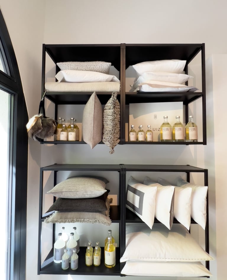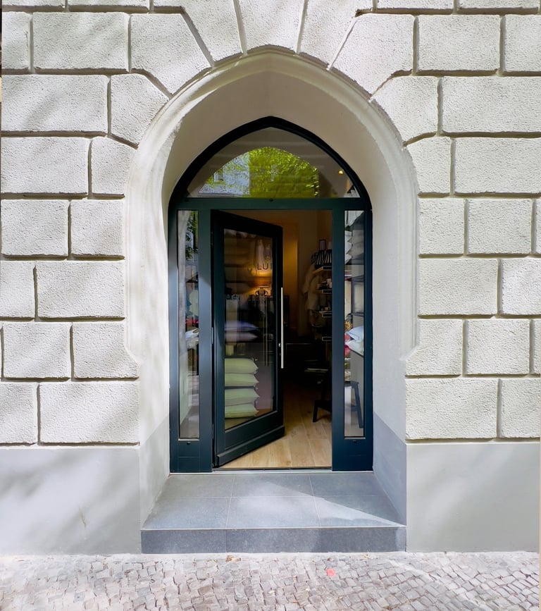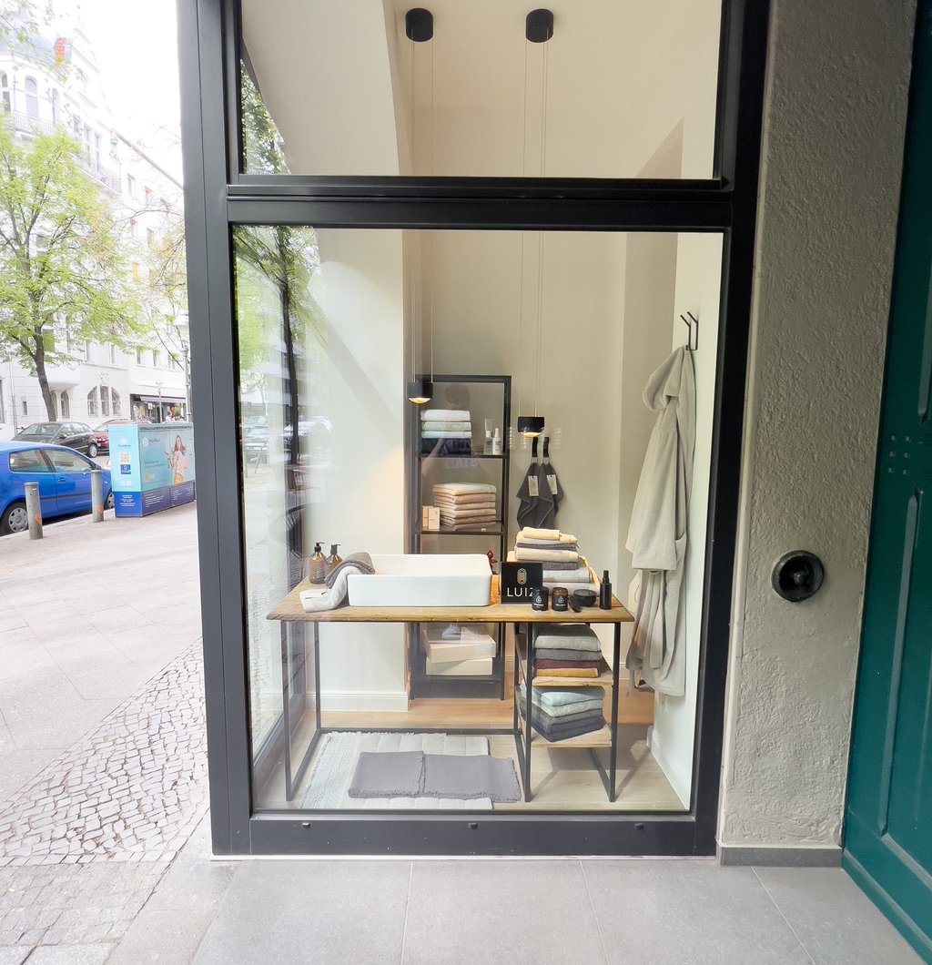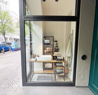 Für die exklusive Bettwäschemarke Luiz entstand ein kompakter, hochwertiger Showroom im Herzen Berlins. Auf kleinstem Raum wurde eine klare, elegante Präsentationsfläche geschaffen.