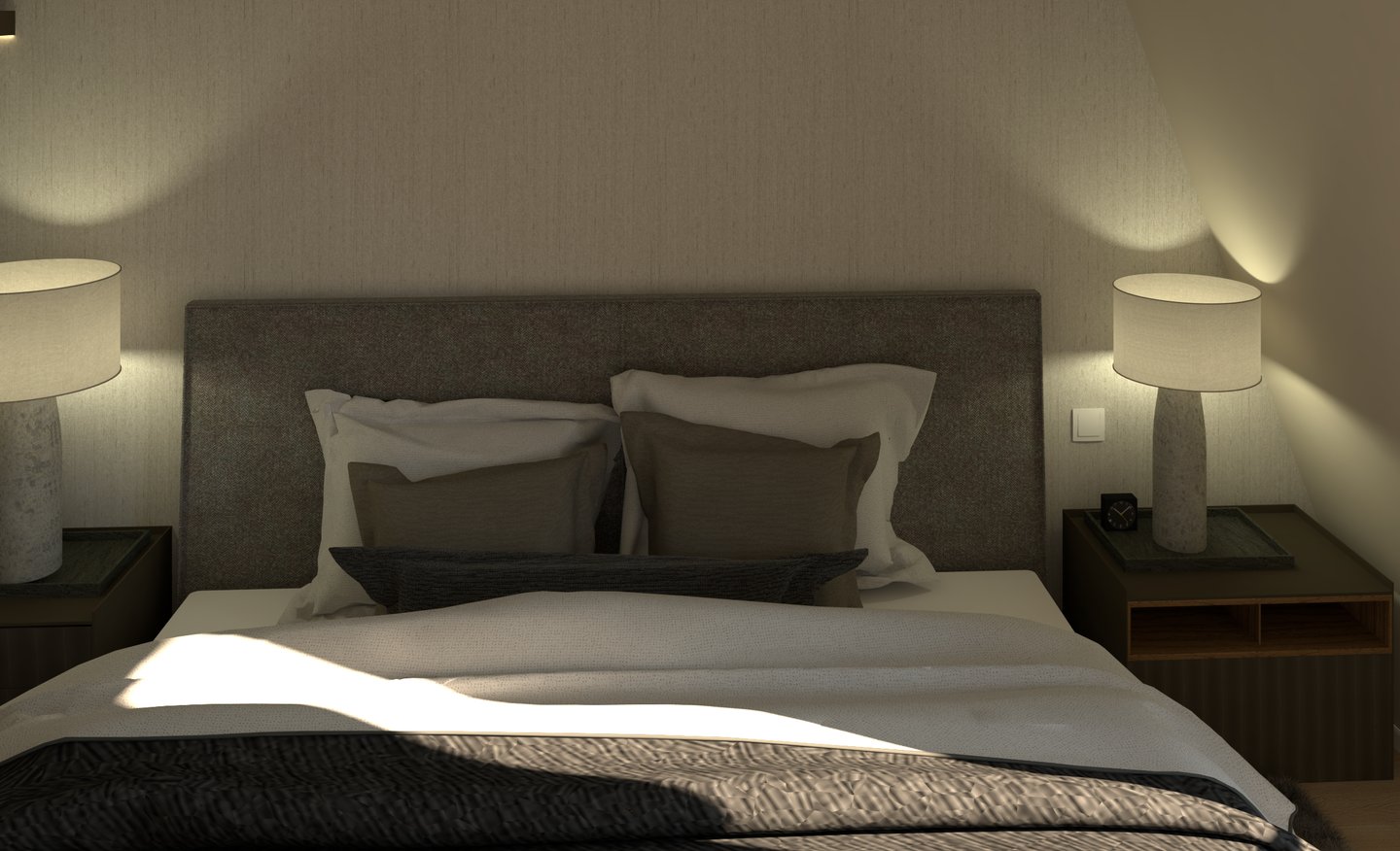 Die Kombination aus ruhiger Grundstimmung und mutigen Details schafft eine harmonische Balance zwischen Rückzugsort und gestalterischem Statement.