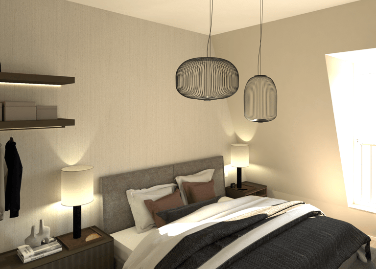 In einem großzügigen Penthouse wurde ein Schlafzimmer gestaltet